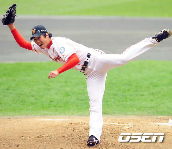 '2011 롯데카드 프로야구 한국시리즈' 4차전 SK 와이번스와 삼성 라이온즈의 경기에서 SK 선발 김광현이 힘차게 공을 뿌리고 있다.