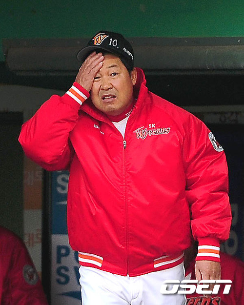 '2011 롯데카드 프로야구 한국시리즈' 4차전 SK 와이번스와 삼성 라이온즈의 경기 8회초 1사 2루 이만수 감독이 구심의 볼 판정에 아쉬움을 나타내고 있다.