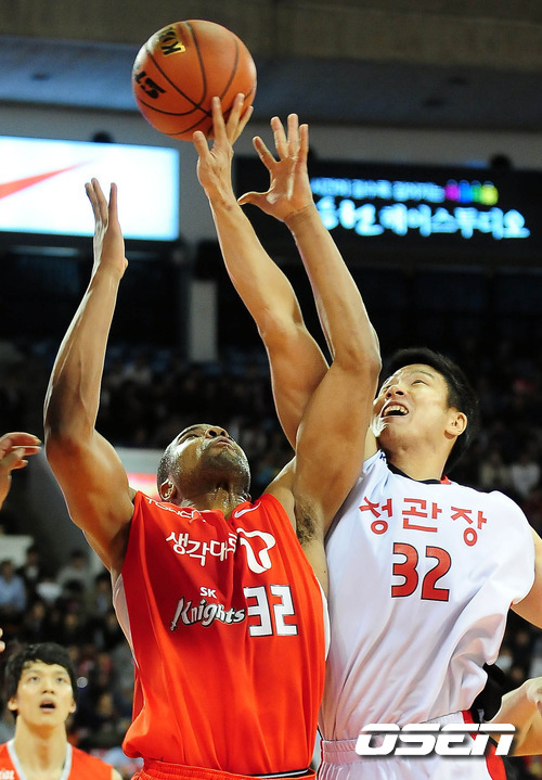 [OSEN=잠실학생체 ,백승철 인턴기자] 30일 오후 서울 잠실 학생체육관서 열린 '2011-2012 KB국민카드 프로농구' 서울 SK와 안양 KGC 인삼공사의 경기 2쿼터 SK 존슨과 인삼공사 김일두가 리바운드볼 다툼을 하고 있다.