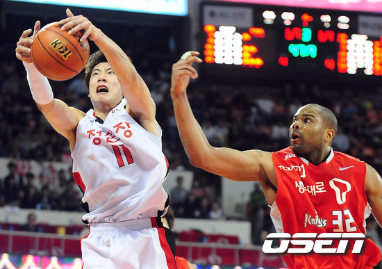 [OSEN=잠실학생체 ,백승철 인턴기자] 30일 오후 서울 잠실 학생체육관서 열린 '2011-2012 KB국민카드 프로농구' 서울 SK와 안양 KGC 인삼공사의 경기 3쿼터 인삼공사 양희종이 SK 존슨에 앞서 볼을 잡아내고 있다.