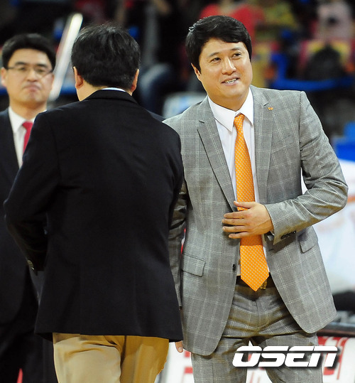 [OSEN=잠실학생체 ,백승철 인턴기자] 30일 오후 서울 잠실 학생체육관서 열린 '2011-2012 KB국민카드 프로농구' 서울 SK와 안양 KGC 인삼공사의 경기 종료 후 SK 문경은 감독대행과 인삼공사 이상범 감독이 인사를 나누고 있다.