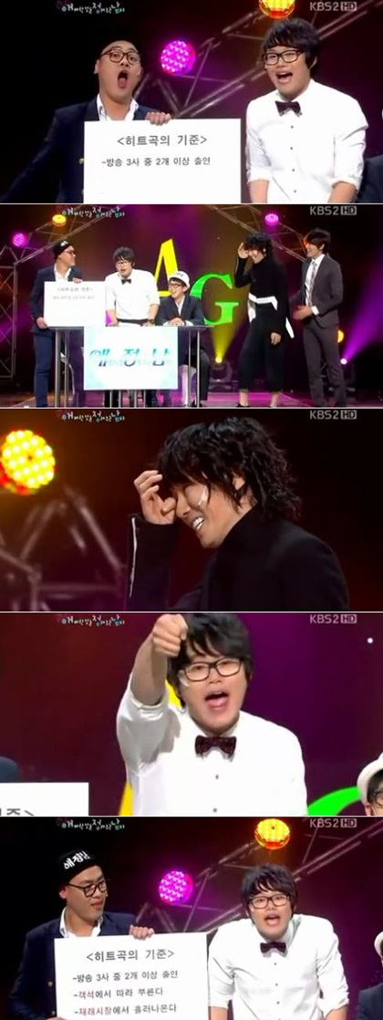 또 "노래를 부르다가 객석으로 넘겼는데 따라 부르면 히트곡", "히트곡은 재래시장에 흘러나와야 한다", "후배들에게 리메이크 될 경우"라며 총 4가지 기준을 밝혔다.