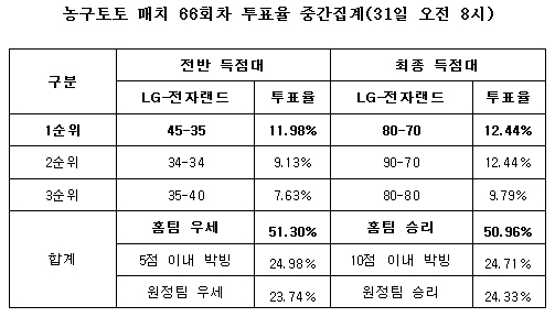 2011-2012시즌 농구토토 매치 66회차 투표율 중간집계 결과