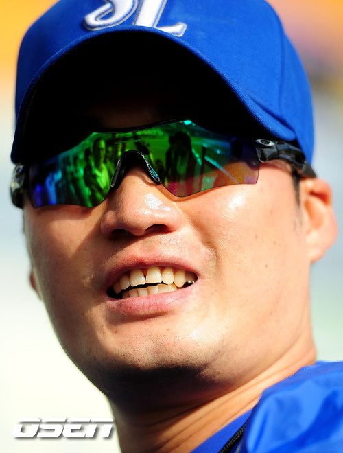 31일 오후 서울 잠실구장에서 열린 '2011 롯데카드 프로야구 한국시리즈' 5차전 삼성 라이온즈와 SK 와이번스의 경기에 앞서 삼성 오승환이 취재진과 인터뷰를 하며 미소짓고 있다.