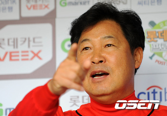 31일 오후 서울 잠실구장에서 열린 '2011 롯데카드 프로야구 한국시리즈' 5차전 삼성 라이온즈와 SK 와이번스의 경기에 앞서 SK 이만수 감독이 취재진과 인터뷰를 하고 있다.