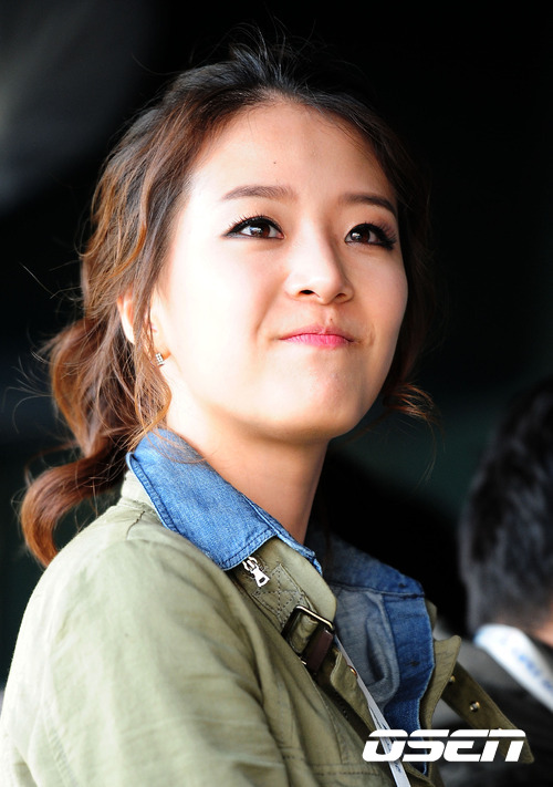 31일 오후 서울 잠실구장에서 열린 '2011 롯데카드 프로야구 한국시리즈' 5차전 삼성 라이온즈와 SK 와이번스의 경기에 앞서 SBS ESPN 배지현 아나운서가 SK 더그아웃에서 이만수 감독대행을 취재하며 미소짓고 있다.