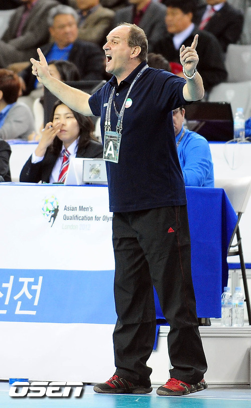 [OSEN= 올림픽공원 ,백승철 인턴기자] 31일 오후 서울 방이동 올림픽공원 SK 올림픽핸드볼경기장에서 열린 한국과 이란의 2012 런던올림픽 남자 핸드볼 아시아지역 준결승 경기 전반 이란 이비카 리마니치 감독이 선수들에게 지시를 내리고 있다.