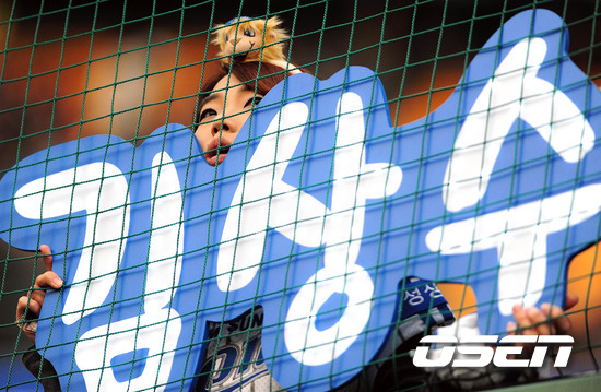 '2011 롯데카드 프로야구 한국시리즈' 5차전 삼성 라이온즈와 SK 와이번스의 경기에 앞서 한 팬이 김상수를 응원하고 있다.
