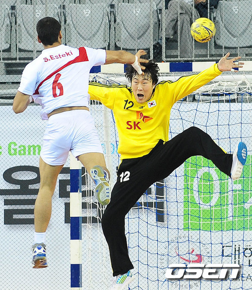 [OSEN= 올림픽공원 ,백승철 인턴기자] 31일 오후 서울 방이동 올림픽공원 SK 올림픽핸드볼경기장에서 열린 한국과 이란의 2012 런던올림픽 남자 핸드볼 아시아지역 준결승 경기 후반 박찬영 골키퍼가 선방 하고 있다.