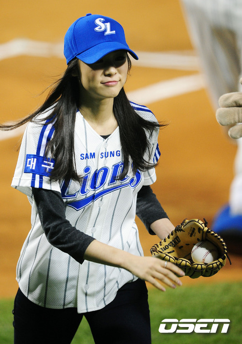 '2011 롯데카드 프로야구 한국시리즈' 5차전 삼성 라이온즈와 SK 와이번스의 경기, 시구를 마친 김연아가 그라운드를 나서고 있다.