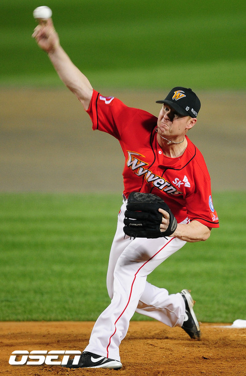 '2011 롯데카드 프로야구 한국시리즈' 5차전 삼성 라이온즈와 SK 와이번스의 경기, 1회말 선발투수로 나선 SK 고든이 역투하고 있다