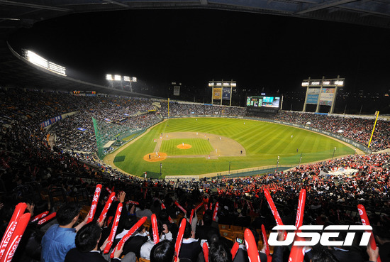 '2011 롯데카드 프로야구 한국시리즈' 5차전 삼성 라이온즈와 SK 와이번스의 경기, 3회초 잠실야구장을 찾은 야구팬들이 열띤 응원을 펼치고 있다.