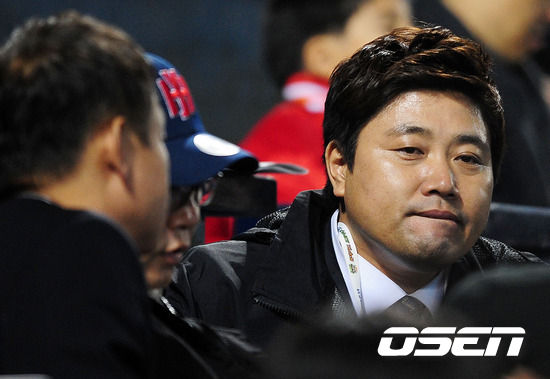 '2011 롯데카드 프로야구 한국시리즈' 5차전 삼성 라이온즈와 SK 와이번스의 경기, 5회말 양준혁 해설위원이 경기를 관전하고 있다.