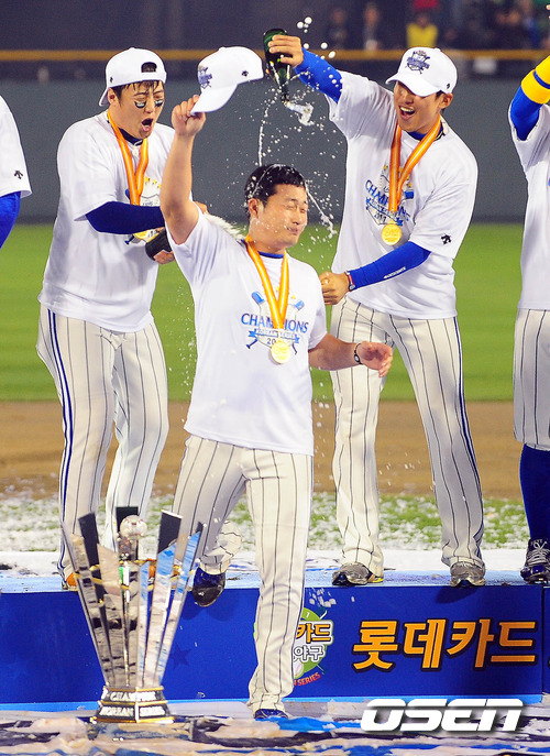 MVP에 선정된 오승환이 샴페인 세례를 받고 있다. /spjj@osen.co.kr