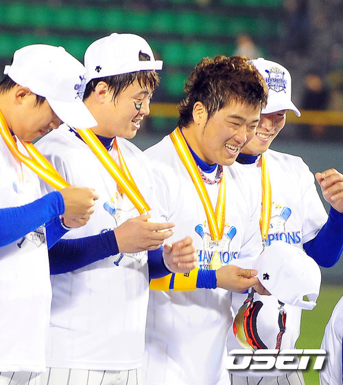 박석민 안지만이 메달을 받고 활짝 웃고 있다. /spjj@osen.co.kr