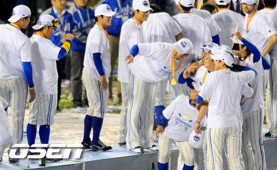 우승을 차지한 삼성 선수들이 사진을 찍으며 우승의 기쁨을 나누고 있다./soul1014@osen.co.kr