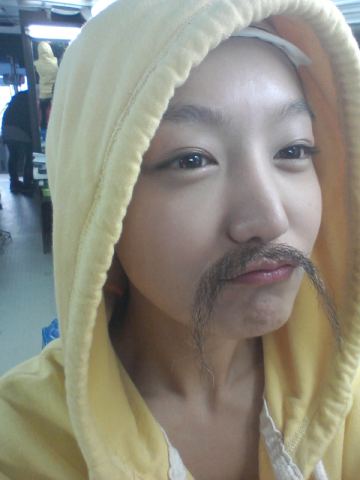 신소율은 1일 오전 자신의 트위터를 통해 "촬영대기시간. 너무 심심한 목야는 감히 주상전하의 수염을 붙여보았다. 잠깐인데 간질간질. 선배님들의 고충을 0.1%라도 느껴보았사옵니다"라는 글과 함께 사진을 올렸다.