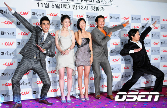 [OSEN= 백승철 인턴기자] 1일 오후 서울 용산 CGV에서 열린 채널 CGV 'TV방자전' 제작보고회에 참석한 출연진들이 포토타임을 갖고 있다.