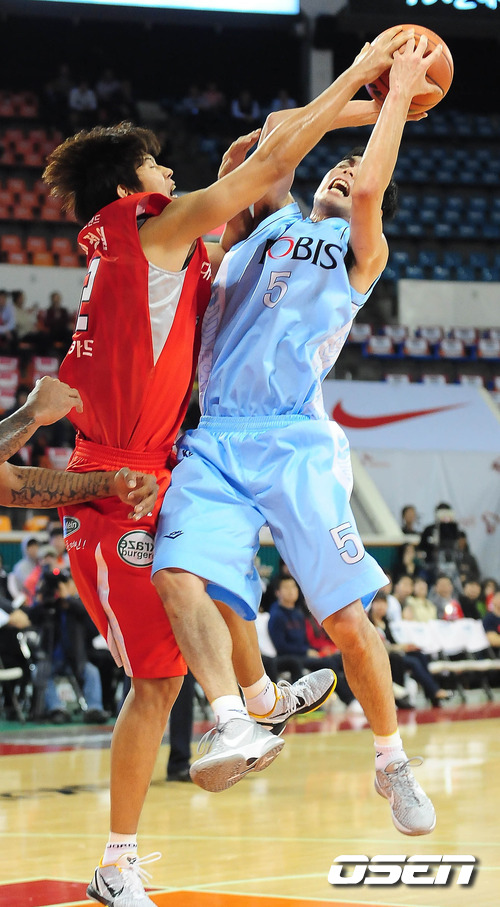 [OSEN=잠실학생체 ,백승철 인턴기자] 1일 오후 서울 잠실 학생체육관서 열린 '2011-2012 KB국민카드 프로농구' 서울 SK와 울산 모비스의 경기 1쿼터 SK 한정원과 모비스 이지원이 리바운드 다툼을 하고 있다.