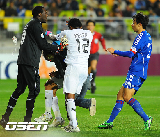 ACL 4강 1차전에서 그라운드에 들어온 관중을 폭행하고 있는 케이타.