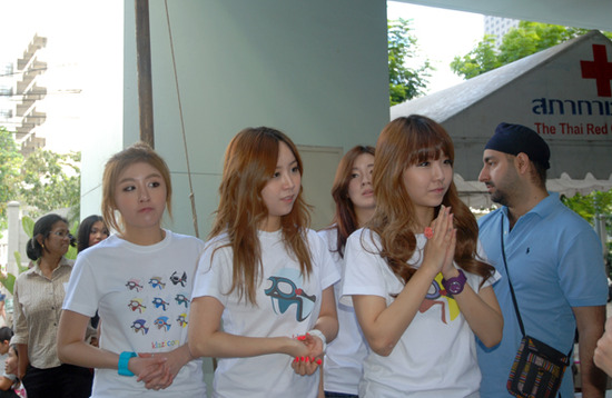그룹 제이큐티가 지난 달 30일 태국의 수도 방콕에서 홍수 피해 봉사 활동에 참여했다.