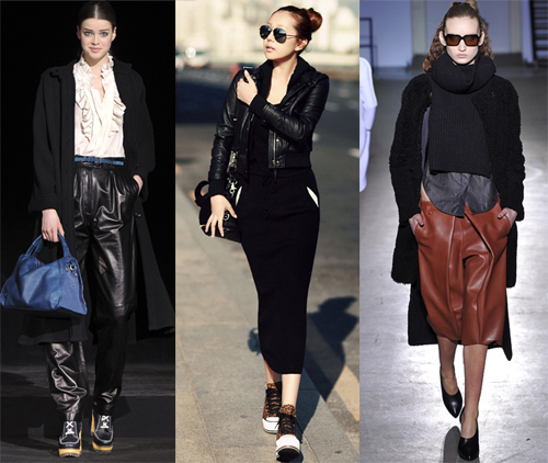 가죽재킷이 일반화된 국민아이템이라면 과감한 가죽스커트는 스타일을 패셔너블하게 만든다. 몸매를 잡아줄 섹시한 H라인의 가죽스커트는 청순한 블라우스와도 캐주얼한 가오리 핏의 티셔츠와도 이질적인 소재지만 또 다른 매력을 드러낸다.