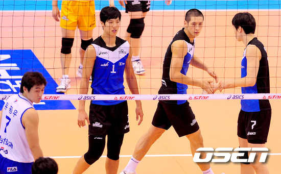2일 오후 대전 충무체육관서 열린 'NH농협 2011-2012 V리그' 삼성화재와 현대캐피탈의 경기 2세트 현대캐피탈 문성민이 교체돼 들어가고 있다. 발바닥과 어깨 부상으로 재활중이던 문성민은 이날 올시즌 첫출장을 기록했다.