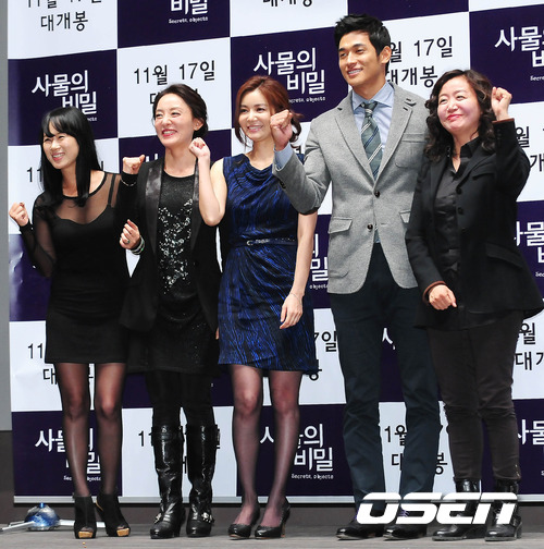 [OSEN= 백승철 인턴기자] 2일 오후 서울 자양동 건대입구 롯데시네마에서 열린 영화 '사물의 비밀' 언론 시사회에 참석한 이영미 감독과 출연진들이 포토타임을 갖고 있다.