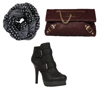 클래식 느낌이 짙은 가죽 소재의 빅 클러치와 버클장식 부티를 코트와 매치하면 매니시하면서도 시크한 여성성을 부각시킬 수 있다. 보온성을 강조하고 싶다면, 복고풍 도트 머플러로 레트로 풍을 연출하거나 퍼 목도리를 휘감아 고급스럽게 연출할 것.