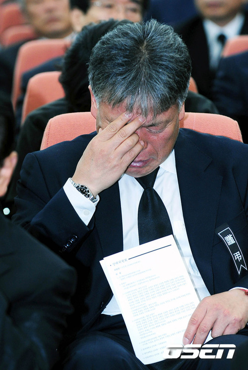 히말라야 안나푸르나에 '코리안 루트'를 개척하다 실종된 고 박영석 대장과 강기석, 신동민 대원에 대한 합동 영결식이 3일 오전 서울 종로구 연건동 서울대학교병원 생명연구원에서 엄수된 가운데 산악인 엄홍길 대장이 눈물을 흘리고 있다.