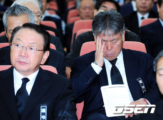 히말라야 안나푸르나에 '코리안 루트'를 개척하다 실종된 고 박영석 대장과 강기석, 신동민 대원에 대한 합동 영결식이 3일 오전 서울 종로구 연건동 서울대학교병원 생명연구원에서 엄수된 가운데 산악인 엄홍길 대장이 눈물을 흘리고 있다.