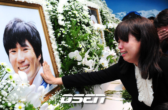 히말라야 안나푸르나에 '코리안 루트'를 개척하다 실종된 고 박영석 대장과 강기석, 신동민 대원에 대한 합동 영결식이 3일 오전 서울 종로구 연건동 서울대학교병원 생명연구원에서 엄수된 가운데 유가족들이 헌화를 마친 뒤 오열하고 있다.