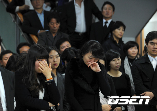히말라야 안나푸르나에 '코리안 루트'를 개척하다 실종된 고 박영석 대장과 강기석, 신동민 대원에 대한 합동 영결식이 3일 오전 서울 종로구 연건동 서울대학교병원 생명연구원에서 엄수된 가운데 조문객들이 눈물을 흘리고 있다.
