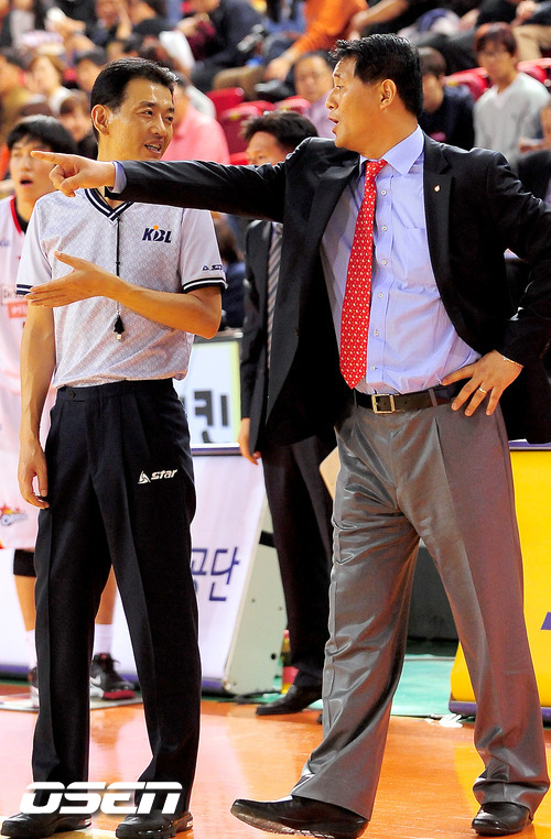 3일 오후 인천 삼산월드체육관에서 열린 '2011-2012 KB 국민카드 프로농구' 인천 전자랜드와 고양 오리온스의 경기 2쿼터 오리온스 추일승 감독이 판정에 항의하고 있다.