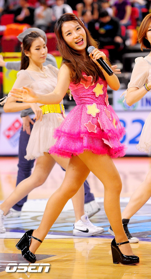 3일 오후 인천 삼산월드체육관에서 열린 '2011-2012 KB 국민카드 프로농구' 인천 전자랜드와 고양 오리온스의 경기 하프타임때 가수 김여희가 축하공연을 펼치고 있다.
