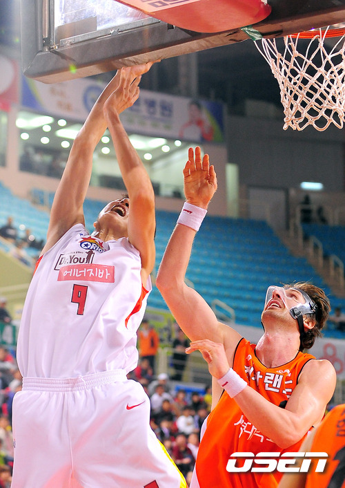 3일 오후 인천 삼산월드체육관에서 열린 '2011-2012 KB 국민카드 프로농구' 인천 전자랜드와 고양 오리온스의 경기 3쿼터 오리온스 최진수가 골밑슛을 성공하고 있다.