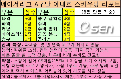 아메리칸리그 A구단 스카운트는 "이대호의 능력은 높게 평가한다. 그러나 쉽지 않을 것"이라고 말했다. 그러면서 그는 자신이 직접 작성한 이대호의 스카우팅 리포트를 공개했다.