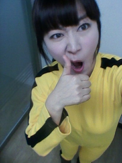 사진 속 김미려는 이소룡 특유의 의상인 노란색 바탕에 검은 줄무늬가 그려져 있는 운동복을 입고 있다. 또 이소룡이 영화 속에서 보여줬던 표정도 따라하고 있어 보는 이의 웃음을 자아낸다.