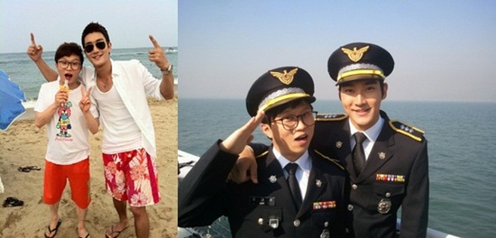 사진 속 박성광은 탁 트인 바다를 배경으로 최시원과 즐거운 한 때를 보내고 있다. 또 다른 사진에는 제복을 갖춰 입고 늠름한 모습도 보여줘 인상적이다.