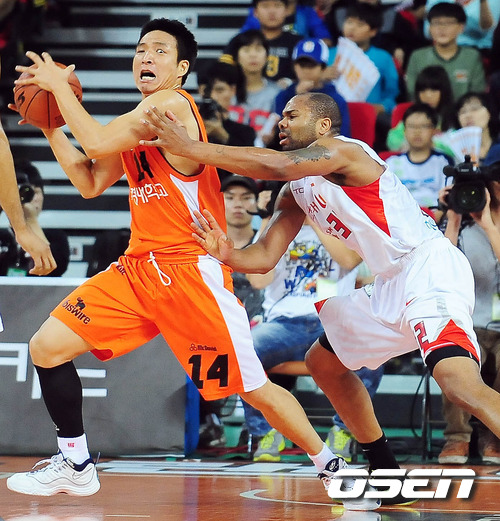 [OSEN=인천 ,백승철 인턴기자] 5일 오후 인천 삼산월드체육관서 열린 '2011-2012 KB국민카드 프로농구' 인천 전자랜드와 서울 SK의 경기 1쿼터 전자랜드 이현호가 SK 존슨을 따돌리고 있다.