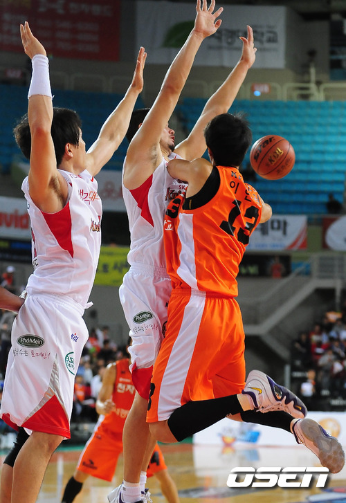 [OSEN=인천 ,백승철 인턴기자] 5일 오후 인천 삼산월드체육관서 열린 '2011-2012 KB국민카드 프로농구' 인천 전자랜드와 서울 SK의 경기 2쿼터 전자랜드 이한권이 공격이 막히자 공을 외곽으로 돌리고 있다.