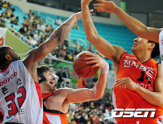 [OSEN=인천 ,백승철 인턴기자] 5일 오후 인천 삼산월드체육관서 열린 '2011-2012 KB국민카드 프로농구' 인천 전자랜드와 서울 SK의 경기 4쿼터 전자랜드 브로만이 볼다툼을 하고 있다.