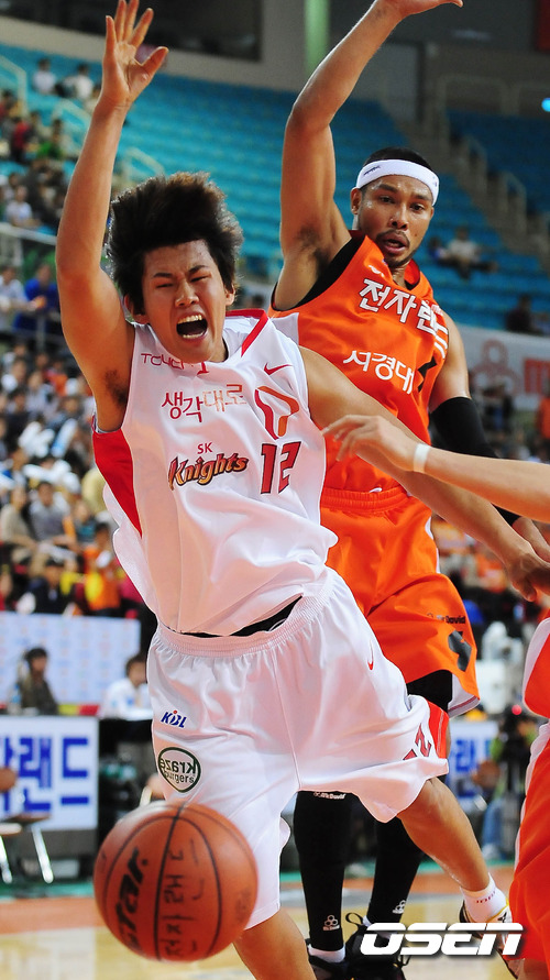 [OSEN=인천 ,백승철 인턴기자] 5일 오후 인천 삼산월드체육관서 열린 '2011-2012 KB국민카드 프로농구' 인천 전자랜드와 서울 SK의 경기 SK 한정원이 볼다툼 중 볼을 놓치고 있다.