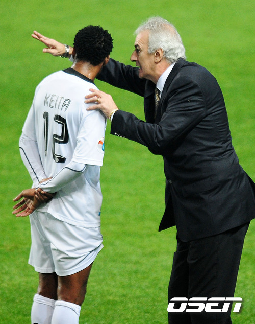 5일 오후 전주월드컵경기장에서 열린 전북 현대(한국)와 알 사드(카타르)의 2011 AFC 챔피언스리그 결승전, 전반 알 사드 케이타가 포세티 감독과 이야기를 나누고 있다.