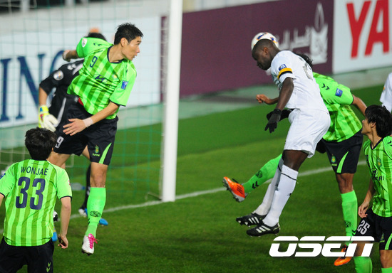 5일 오후 전주월드컵경기장에서 열린 전북 현대(한국)와 알 사드(카타르)의 2011 AFC 챔피언스리그 결승전, 전반 알 사드가 공격수가 헤딩슛을 시도하고 있다.