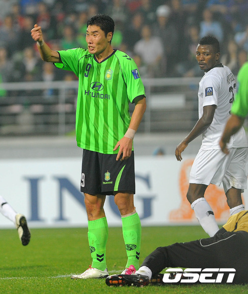 5일 오후 전주월드컵경기장에서 열린 전북 현대(한국)와 알 사드(카타르)의 2011 AFC 챔피언스리그 결승전, 전반 전북 정성훈이 찬스가 무산되자 동료에게 불만을 어필하고 있다.