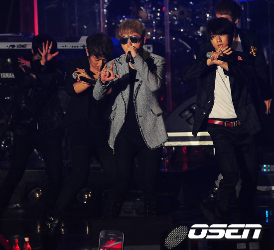 5일 오후 서울 강서구 KBS88체육관에서 열린 가수 김태우-휘성의 콘서트 '투맨쇼'에서 게스트로 참석한 비스트가 열창을 하고 있다.