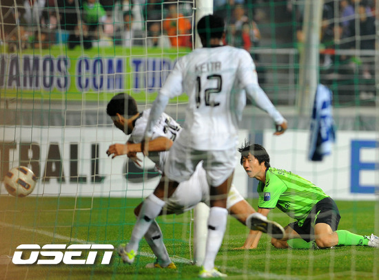 5일 오후 전주월드컵경기장에서 열린 전북 현대(한국)와 알 사드(카타르)의 2011 AFC 챔피언스리그 결승전, 후반 전북 이승현이 동점골을 성공시키고 있다.
