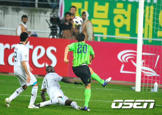 5일 오후 전주월드컵경기장에서 열린 전북 현대(한국)와 알 사드(카타르)의 2011 AFC 챔피언스리그 결승전, 연장 전반 전북 이동국의 슛이 아쉽게 골문을 벗어나고 있다.