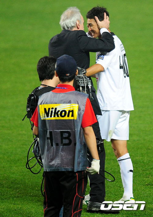 알 사드 포사티 감독이 이정수와 우승을 기뻐하고 있다.
